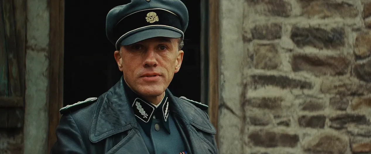 Cast: Brad Pitt as First Lieutenant Aldo "The Apache" Raine, Mélanie Laurent as Shosanna Dreyfus / Emmanuelle Mimieux, Christoph Waltz as SS Colonel Hans "The Jew Hunter" Landa, Eli Roth as Staff Sergeant Donny "The Bear Jew" Donowitz, Michael Fassbender as Lieutenant Archie Hicox, Diane Kruger as Bridget von Hammersmark, Daniel Brühl as Private First Class Fredrick Zoller, Til Schweiger as Sergeant Hugo Stiglitz, Gedeon Burkhard as Corporal Wilhelm Wicki, Jacky Ido as Marcel, B.J. Novak as Private First Class Smithson "The Little Man" Utivich, Omar Doom as Private First Class Omar Ulmer, August Diehl as Major Dieter Hellstrom, Denis Ménochet as Perrier LaPadite, Sylvester Groth as Joseph Goebbels, Martin Wuttke as Adolf Hitler, Mike Myers as General Ed Fenech, Julie Dreyfus as Francesca Mondino, Léa Seydoux as Charlotte LaPadite, Richard Sammel as Sergeant Werner Rachtman, Alexander Fehling as Staff Sergeant Wilhelm / Pola Negri, Rod Taylor as Winston Churchill, Samm Levine as Private First Class Hirschberg, Paul Rust as Private First Class Andy Kagan, Michael Bacall as Private First Class Michael Zimmerman, Arndt Schwering-Sohnrey as German Soldier / Winnetou, Petra Hartung as German Female Soldier / Beethoven, Volker Michalowski as German Soldier / Edgar Wallace, Ken Duken as German Soldier / Mata Hari, Christian Berkel as Proprietor Eric, Tina Rodriguez as Julie LaPadite, Lena Friedrich as Suzanne LaPadite, Ludger Pistor as CPT. Wolfgang, Jana Pallaske as Babette, Wolfgang Lindner as Herrman #1, Michael Kranz as Herrman #3, Rainer Bock as General Schonherr, André Penvern as Old French Veterinarian, Sebastian Hülk as Hellstrom's Driver / Nazi Usher #1, Buddy Joe Hooker as Gaspar, Sönke Möhring as Private Butz / Walter Frazer, Carlos Fidel as PFC. Simon Sakowitz, Hilmar Eichhorn as Emil Jannings, Patrick Elias as Jakob Dreyfus, Eva Löbau as Miriam Dreyfus, Salvadore Brandt as Bob Dreyfus, Jasper Linnewedel as Amos Dreyfus, Wilfried Hochholdinger as German Company SGT., Olivier Girard as Maxim's Waiter, Michael Scheel as General Frank, Leo Plank as Motorcycle Rider #1, Andreas Tietz as Motorcycle Rider #2, Bo Svenson as American Colonel, Enzo G. Castellari as Himself, Christian Brückner as Kliest Voice (voice), Samuel L. Jackson as Narrator (voice) (uncredited), Bela B. as Usher #2 (uncredited), Noemi Besedes as German Movie Star (uncredited), Hélène Cardona as German Official (voice) (uncredited), Jake Garber as German Soldier (uncredited), Sabrina Rattey as German Civilian (uncredited), Alex Boden as Military Attaché (uncredited), Guido Föhrweißer as SS Major (uncredited), Harvey Keitel as OSS Commander Who Agrees to Deal (voice) (uncredited), Andrew Napier as Nazi Theatre Attendee (uncredited), Gregory Nicotero as Gestapo Major (uncredited), Quentin Tarantino as First Scalped Nazi / American Soldier in 'Pride of Nation' (uncredited), Vitus Wieser as French Waiter (uncredited), Bea-Marie Rück as German Female Soldier (uncredited), Daniela Schwerdt as Cinema Guest (uncredited), Anne-Sophie Franck as Mathilda